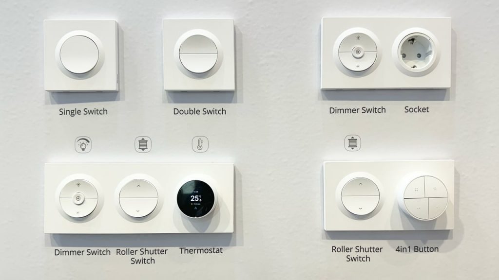 Außerdem vorgestellt: zwei Matter-kompatible Luftsensoren mit WLAN und USB-Stromversorgung. Der SAWF-07P misst neben Temperatur und Luftfeuchtigkeit den Feinstaub (PM2.5), das Schwestermodell SAWF-08P stattdessen Kohlendioxid (CO₂). Obendrein drängt es das Unternehmen in den Installationsbereich: In Berlin war die neue Schalterserie Fusion zu sehen, die gängige Anwendungsbereiche abdeckt. Vom Wandtaster über Dimmer und schaltbare Steckdosen mit Energieübertragung bis zum Temperaturregler reicht das Programm. Fast alle Modelle sind wahlweise als Zigbee-Version oder mit Matter erhältlich. Ihre weißen Blenden passen ins europäische Schalter-Raster (55 x 55), für B2B-Kunden und Großabnehmer bietet Sonoff auch andere Farben und Oberflächendekore an.