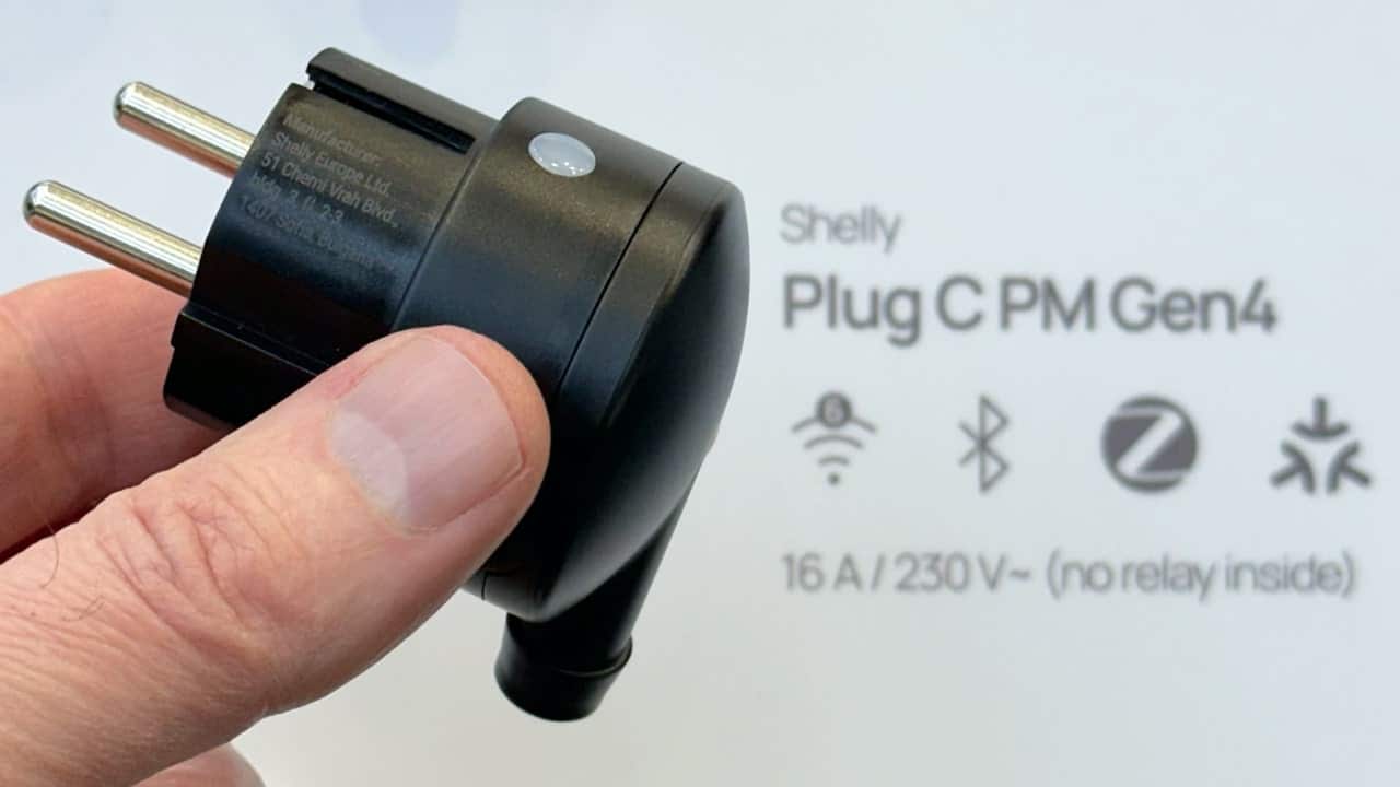 Los geht es mit einem smarten Zwischenstecker, der bereits erhältlich ist: Der Plug M Gen3 gehört zur dritten Hardware-Generation von Shelly, die nur teilweise mit Matter ausgestattet wurde. Er verträgt stärkere Ströme als der Plug S Gen3, was die anschließbare Leistung von 2500 auf 3000 Watt erhöht. Gleichzeitig ist das Gehäuse etwas gewachsen und hat nun eine kantige Form. Mit dem Verzicht auf den LED-Leuchtring des runden Plug S geht ein niedrigerer Verkaufspreis einher. Stattessen zeigt der Einschaltknopf in wechselnden Farben den Betriebszustand und die Höhe der abgerufenen Leistung an. Die Funktion zur Energiemessung ist ebenfalls vorhanden.