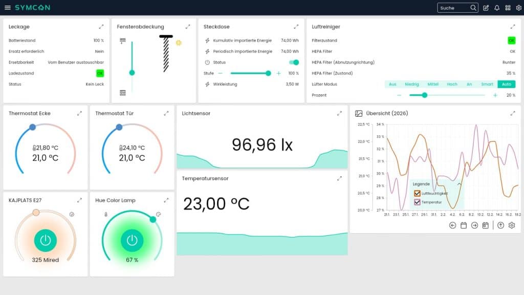 Haushaltsgroßgeräte wie Kühlschränke und Waschmaschinen oder Wärmepumpen und Wallboxen fehlen noch – entweder, weil es keine entsprechenden Produkte am Markt gibt, oder weil diese kostspielig sind. Denn Symcon verfolgt die Strategie, von jedem Typ mindestens ein Exemplar anzuschaffen und selbst in der Praxis zu erproben. Der Geschäftsführer verrät: „Wir verfügen mittlerweile über diverse Hubs, Bridges, und sehr viele Geräte, die Matter over Thread wie auch Matter over Wi-Fi unterstützen. Die Kollegen nennen diese Sammlung liebevoll ihren Hardwareturm zum Testen.“