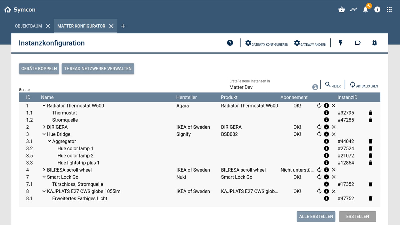 Zur Entwicklung nutzen die Lübecker das SDK von Matter 1.5, haben vorerst aber nur die wichtigsten Gerätetypen aus Matter 1.4 umgesetzt. Darunter: Lichter, Aktoren, Sensoren, Thermostate, Fensterbedeckungen und Türschlösser. Auch Saugroboter, Luftreiniger, Klimageräte und Batteriespeicher sind bereits an Bord.