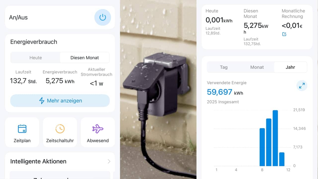 Ein zentrales Merkmal der Tapo P410M ist die integrierte Energieüberwachung. Sie misst den Stromverbrauch und kann laut TP-Link sogar die Stromrichtung erkennen. Das ist für Nutzer interessant, die mit einem Balkonkraftwerk arbeiten und nachvollziehen wollen, wie viel Energie gerade eingespeist oder verbraucht wird. Dank einer Zertifizierung für Matter 1.3 dürfte der Smart Plug seine Energiedaten auch an verbundene Ökosysteme weitergeben, wie es etwa der Tapo P110M im Innenbereich tut. Er kann damit Teil eines Matter-basierten Energiemanagements werden.